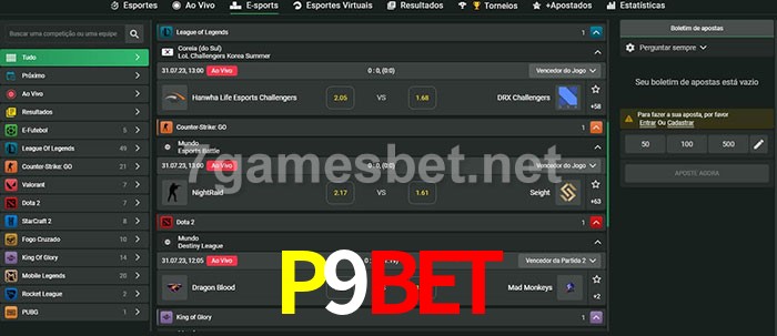 O P9Bet oferece uma grande seleção de opções de apostas em e-sports com probabilidades competitivas